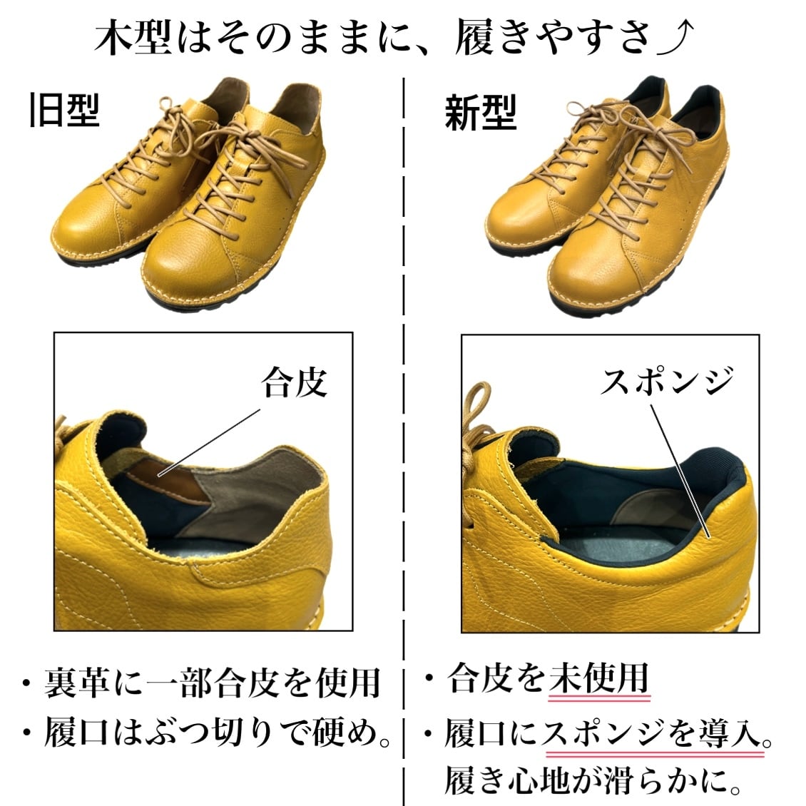 ⑤履き口にスポンジを導入し、履き心地を追求