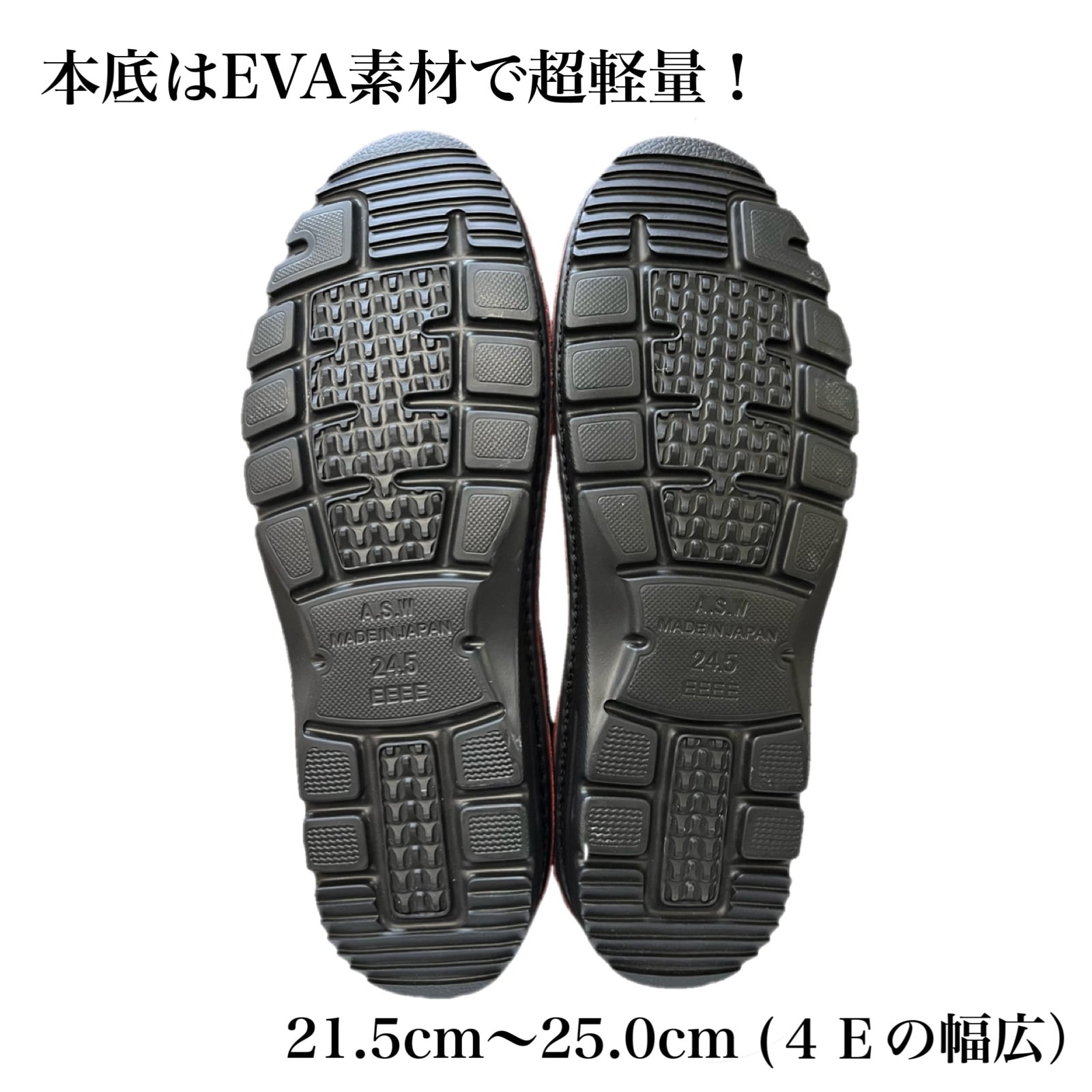 ②超軽量で幅広の多サイズ揃い(21.5cm〜25.0cm)