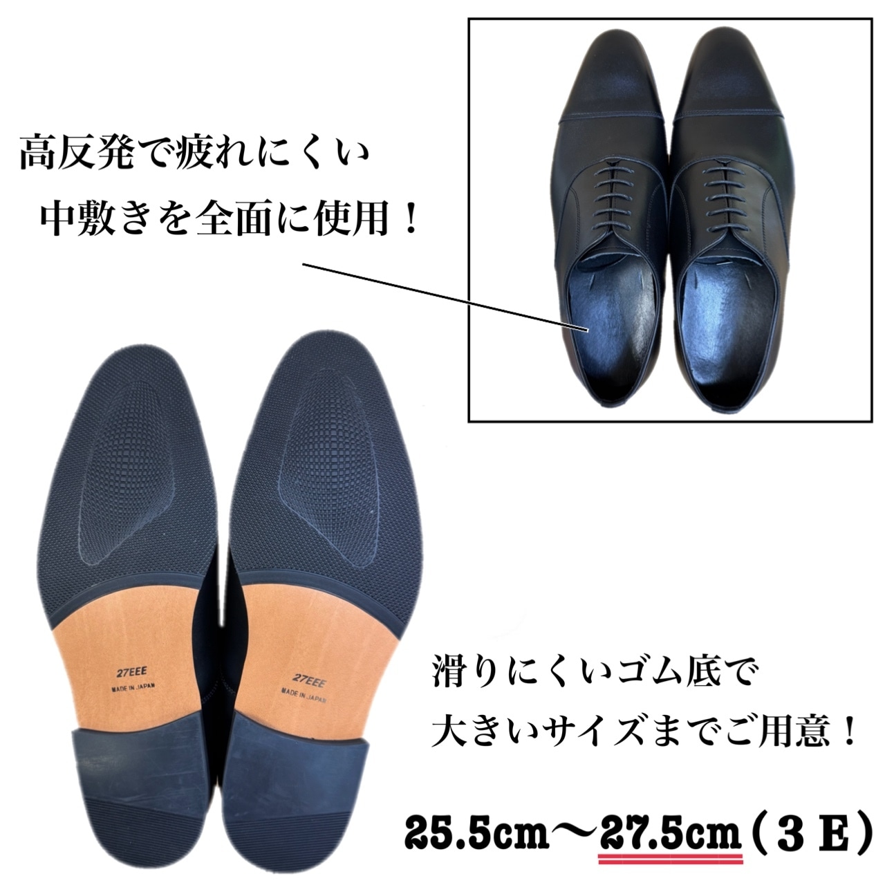 柔らかい牛革を使用した内羽根ストレートチップの紳士靴。内羽根はフォーマル寄りとされますが、ビジネスでも大活躍の革靴です。