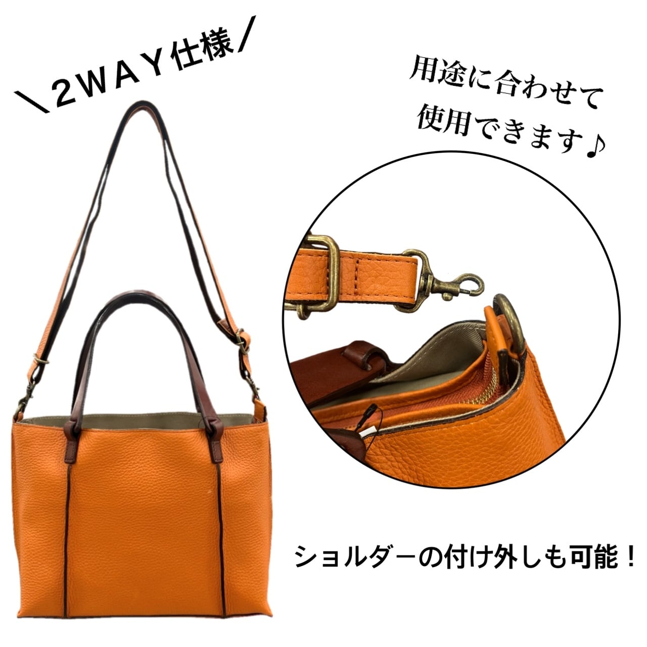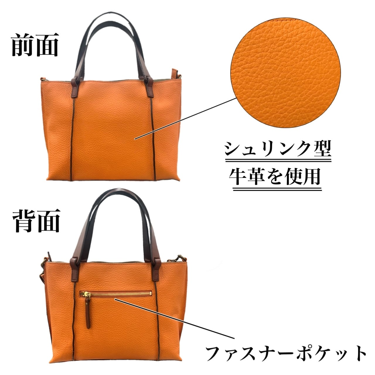 シュリンク型の牛革を使用したミニサイズのトート。ショルダー付きなのでシーンや用途に合わせてコーディネートできます♪