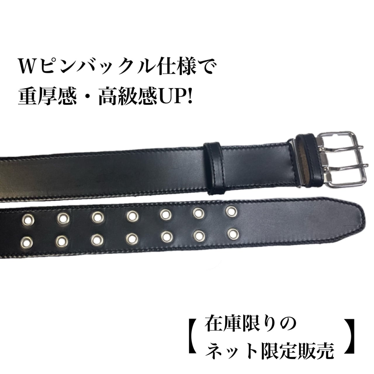 Wピンで、重厚感と高級感のあるベルトです。
