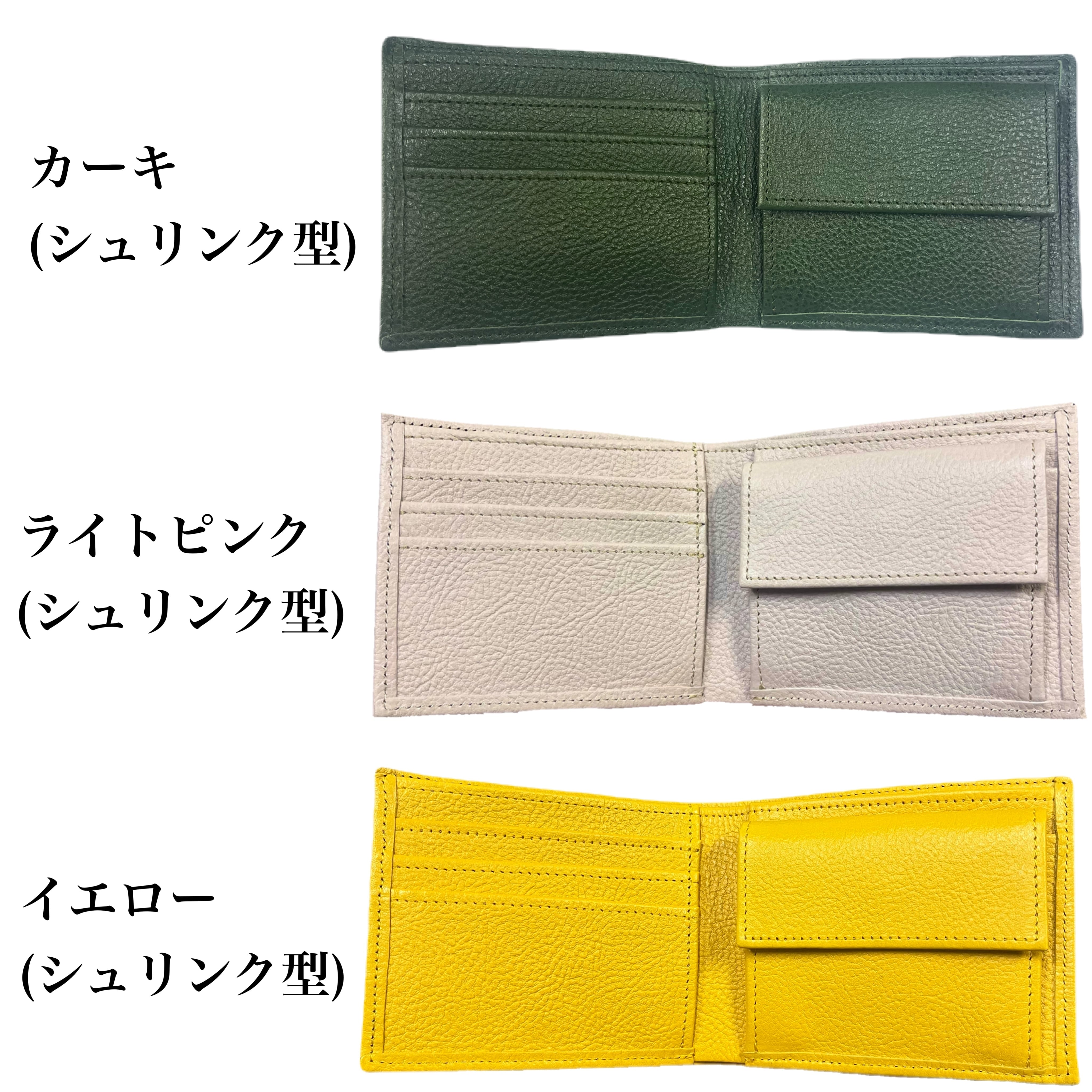 柔らかい牛革にオーストリッチやクロコの型押しをしたOKACHUオリジナルの二つ折り財布です。