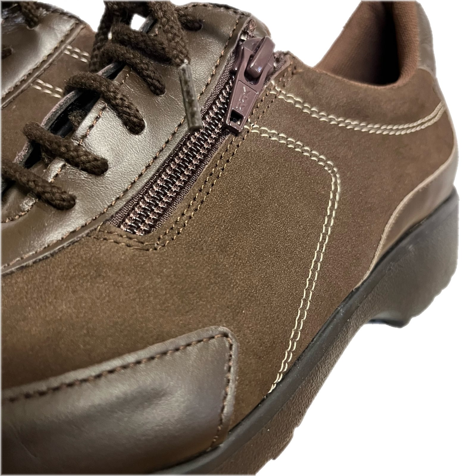 幅は4Eで外反母趾の方でも安心です。ファスナー付きで脱ぎ履きも楽々。