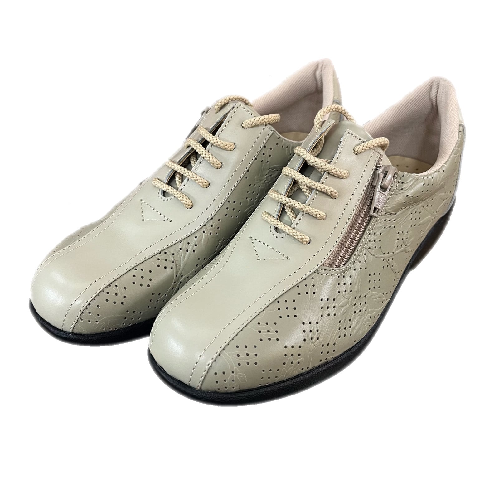横には花柄のパンチを開いていて通気性が良くなっており、ファスナー付きの為脱ぎ履きも楽々です♪