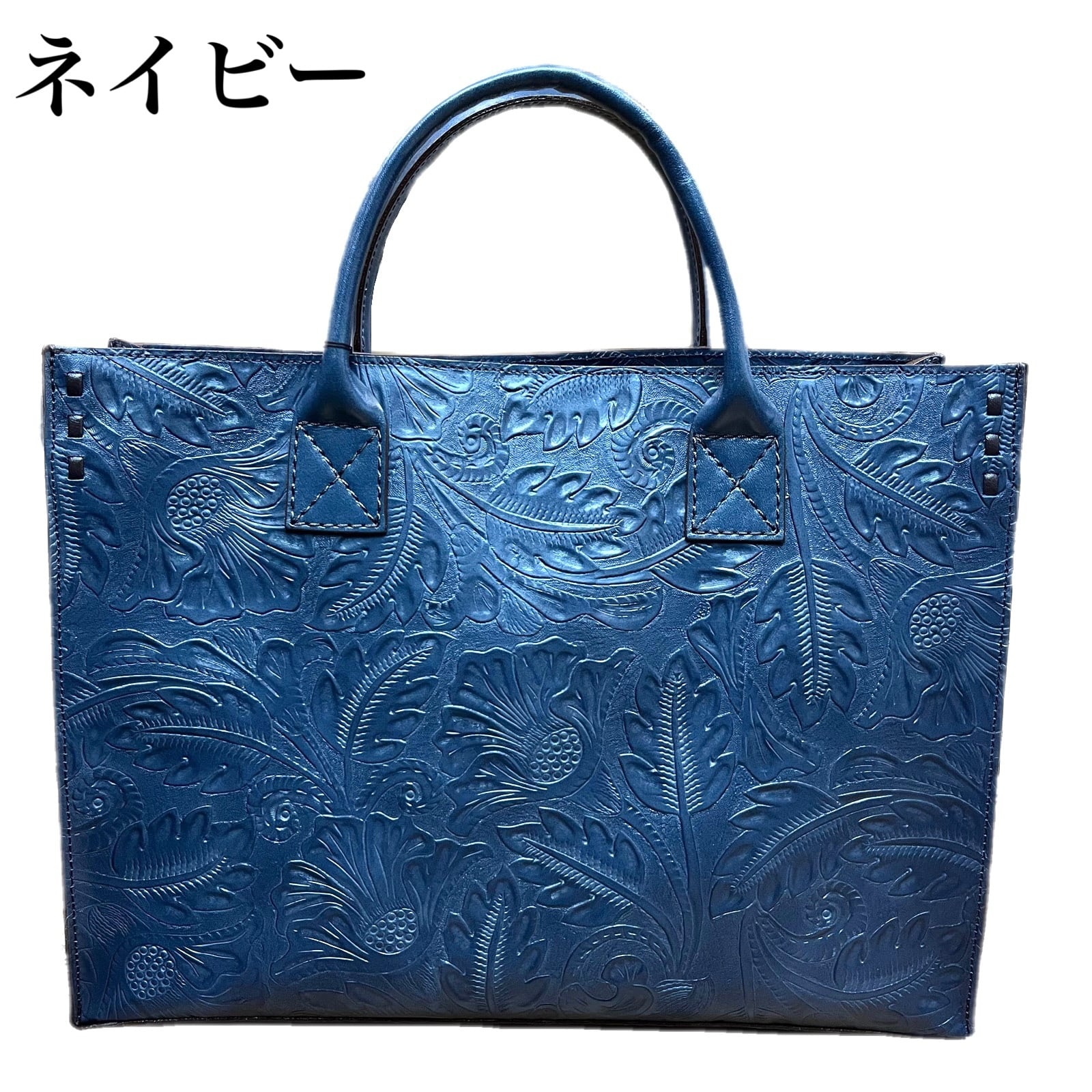 牛革に花柄の型押しを施したトートバッグです。