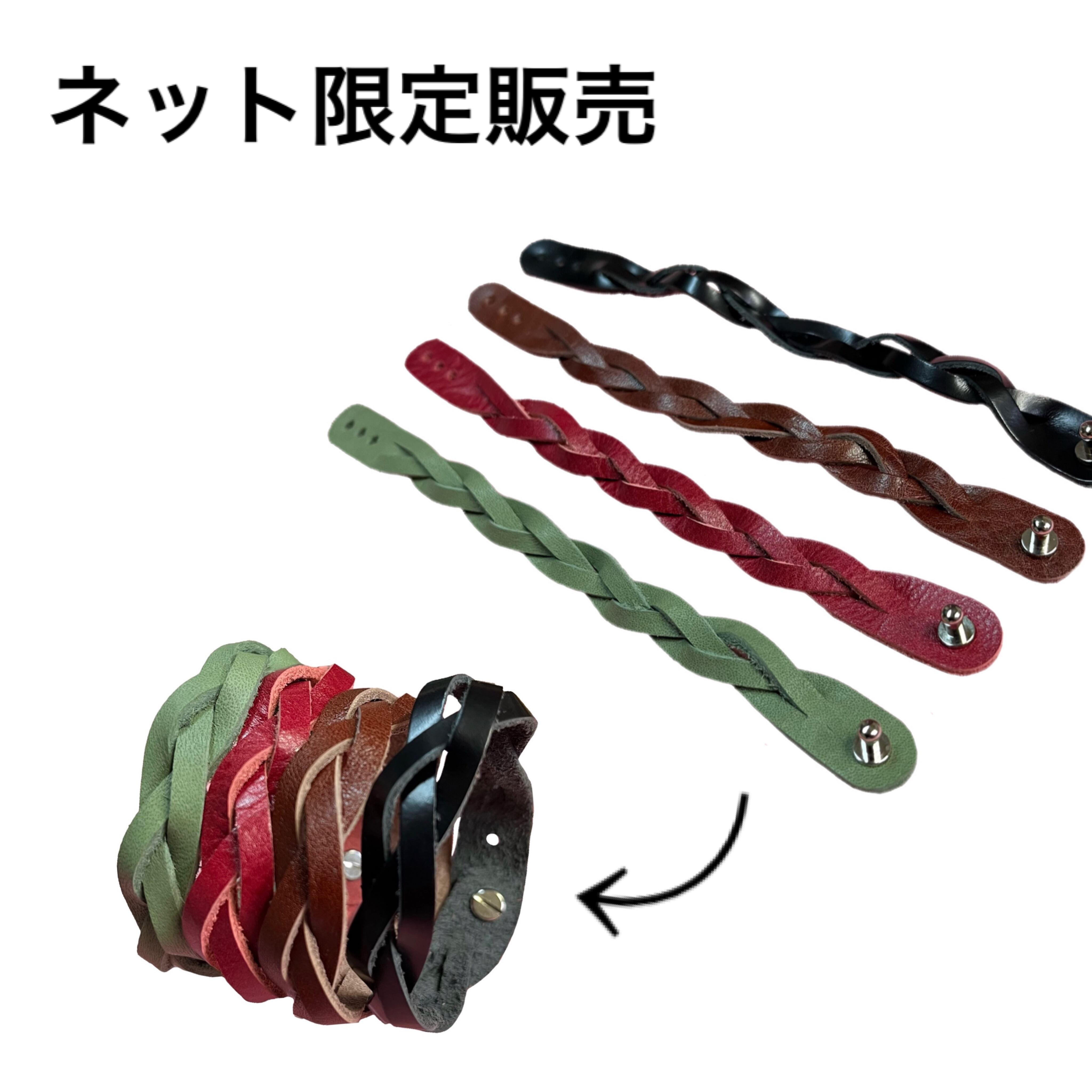 本革を編み込んで作ったブレスレットです。