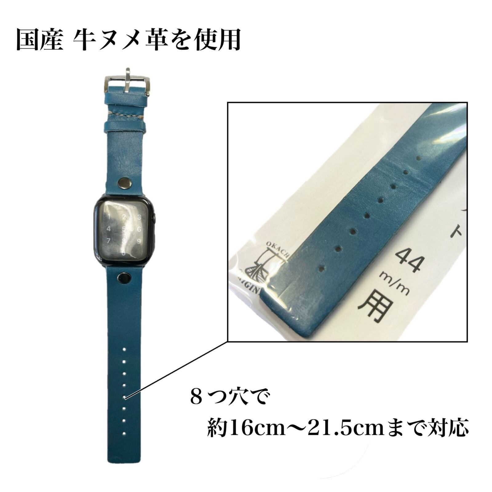 Apple Watch 44mm/45mm用【SERIES3〜9対応】のベルトを国産牛ヌメ革で製作。